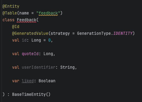 val request = FeedbackRequest(quoteId = savedQuote.id, liked = true)