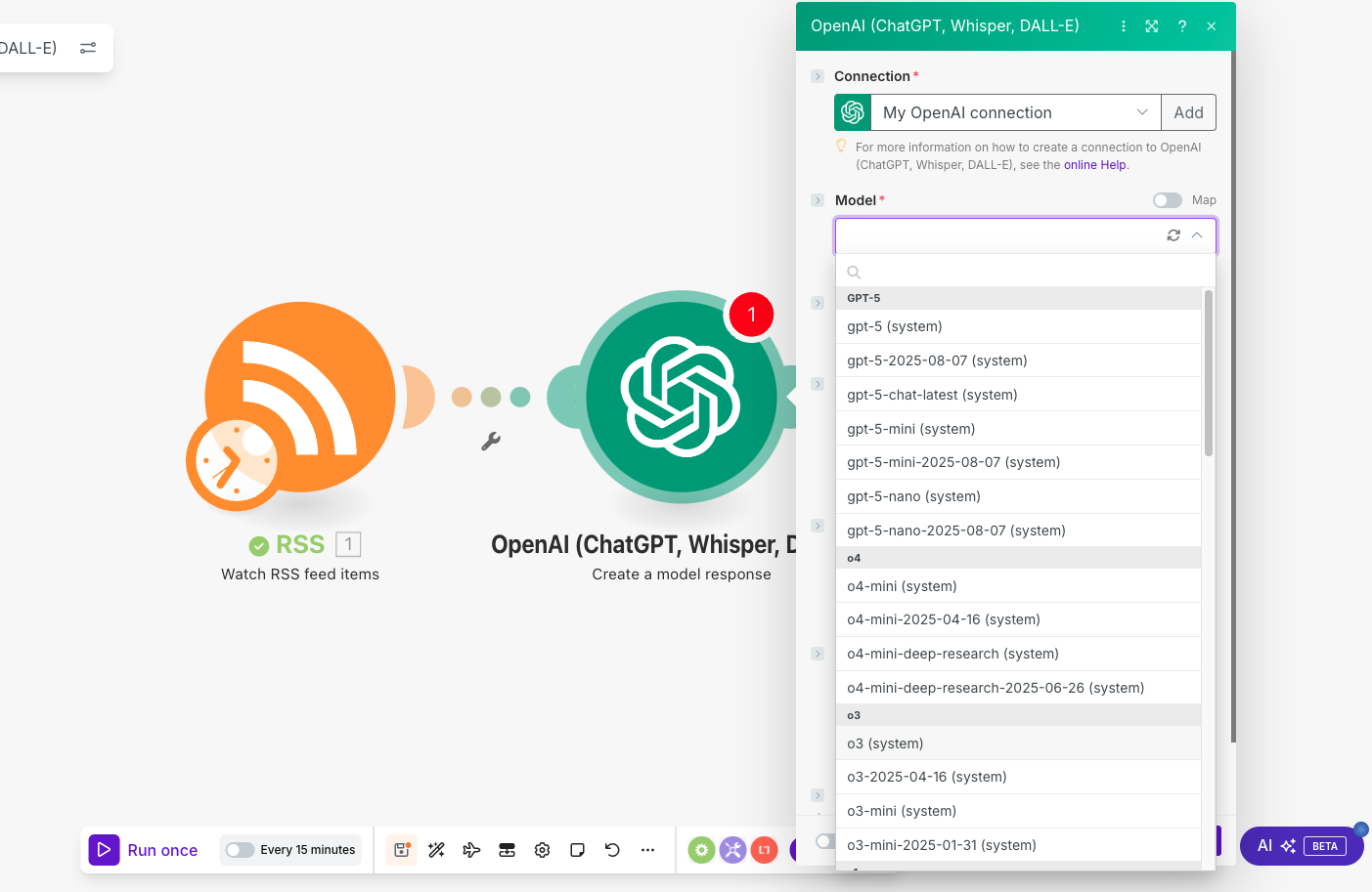 내 계정 시크릿 정보를 통해 ChatGPT 계정과 연동하고, 알맞은 모델을 선택해준다.