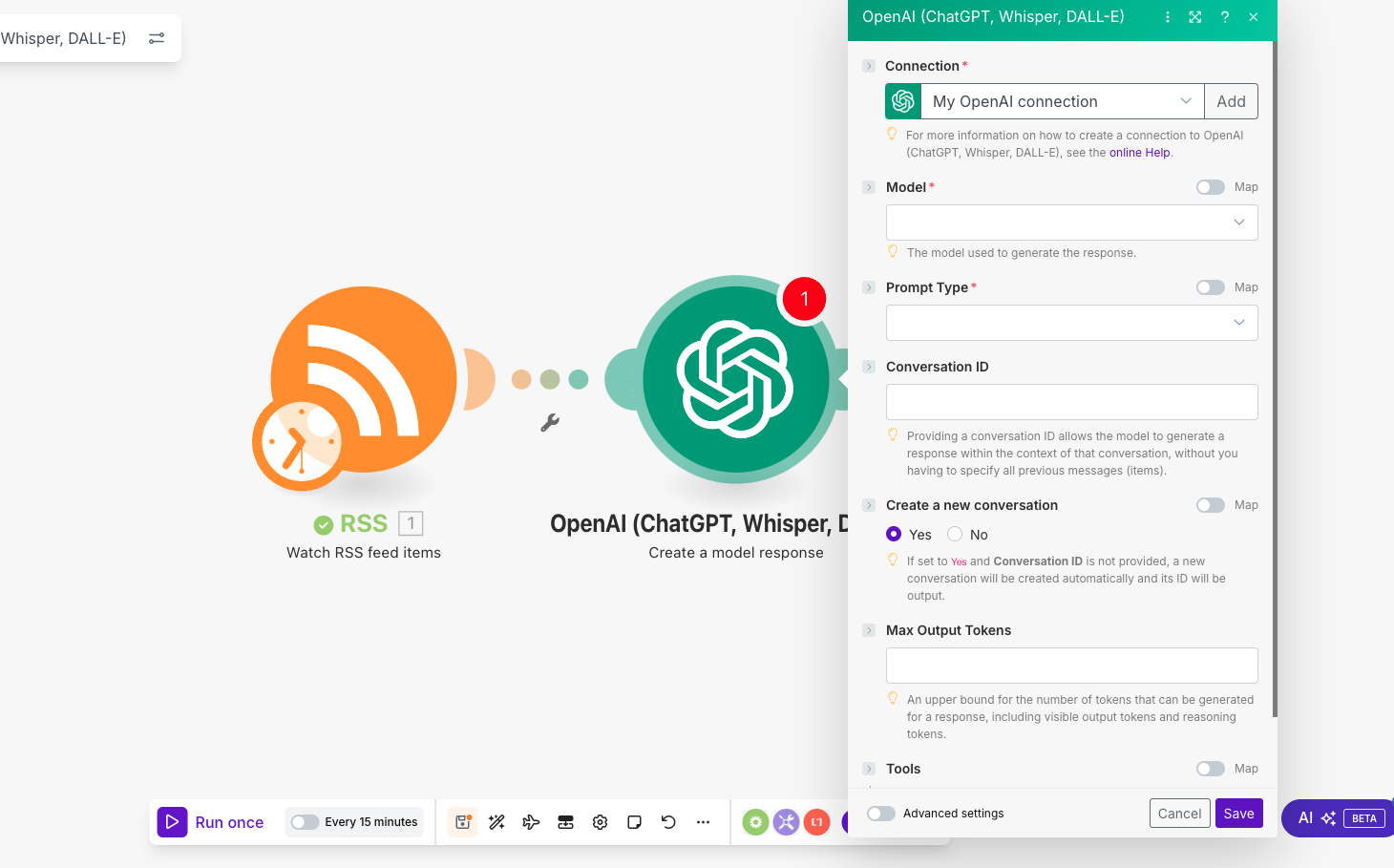 Make.com에서 진행한것처럼 RSS피드를 받도록 우선 RSS를 추가한다.